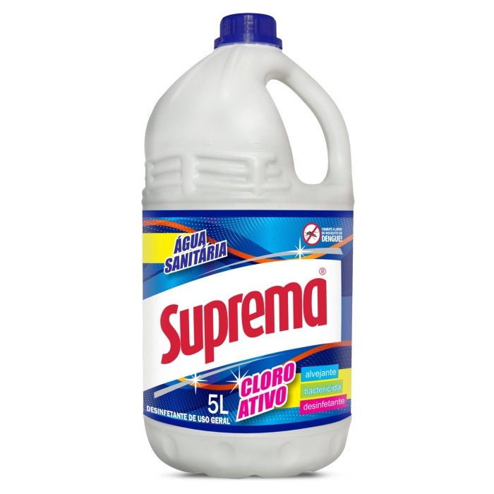Com um teor ideal de cloro ativo, a Água Sanitária Suprema oferece uma ação bactericida excepcional, além de ser um poderoso alvejante e eliminador de odores. No alvejamento de tecidos proporciona um branco impecável e seus benefícios vão muito além. Utilize-a na limpeza geral da casa e transforme cada canto em um ambiente higienizado e livre de germes.