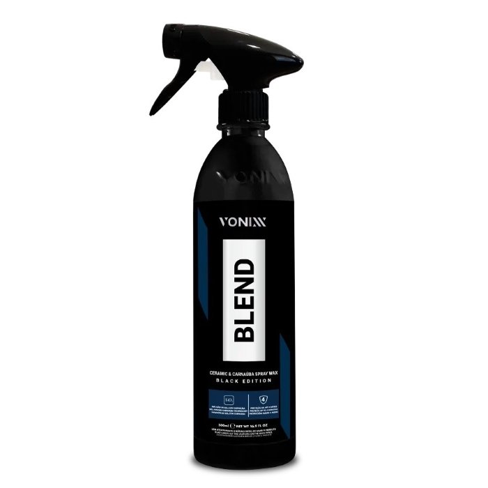 Blend Ceramic & Carnaúba Spray Wax Black Edition é uma cera híbrida, composta por SiO2 e pela mais pura carnaúba tipo 1 que protege a superfície veicular por até quatro meses, em especial as pinturas escuras. O produto promove a resistência cerâmica, o brilho quente da carnaúba e hidrorrepelência.