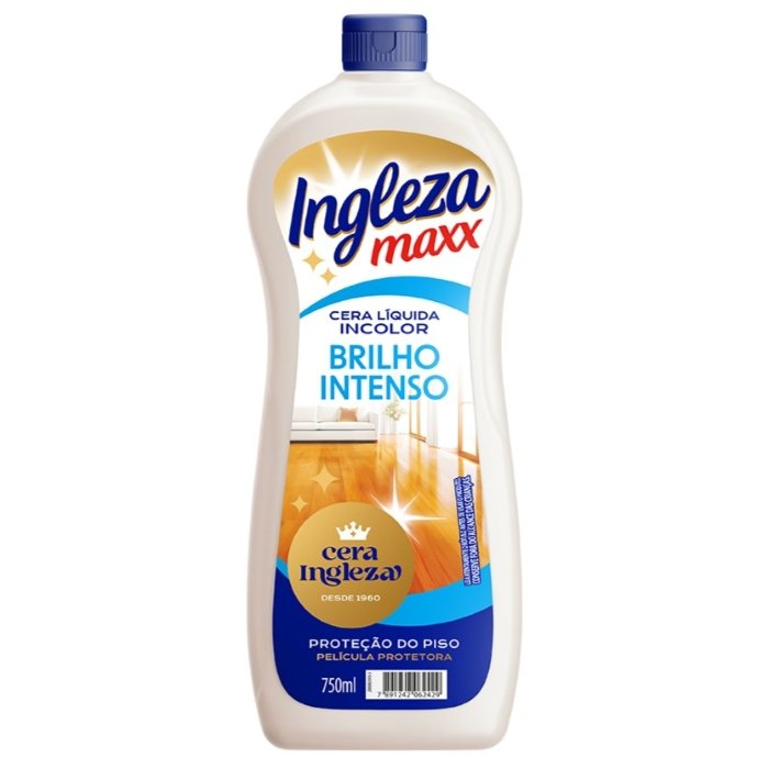 Cera Liquida Incolor Ingleza Maxx 750ml. Proteção, brilho e perfume para diversos tipos de piso.