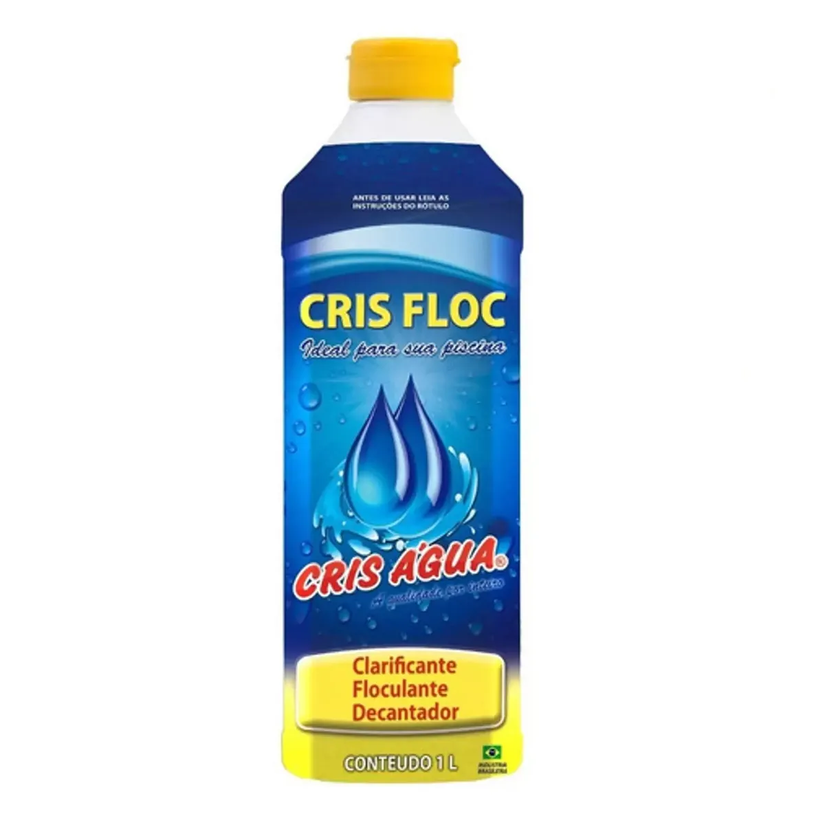 O CRIS FLOC aglomera as partículas microscópicas em suspensão na água. Formando flóculos maiores e mais pesados. Que passam a ser retido pelo meio filtrante ou desce para o fundo da piscina. O CRIS FLOC dispensa o uso de Sulfato de Alumínio. Não altera o pH e é compatível com outros produtos usados no tratamento da água da piscina.