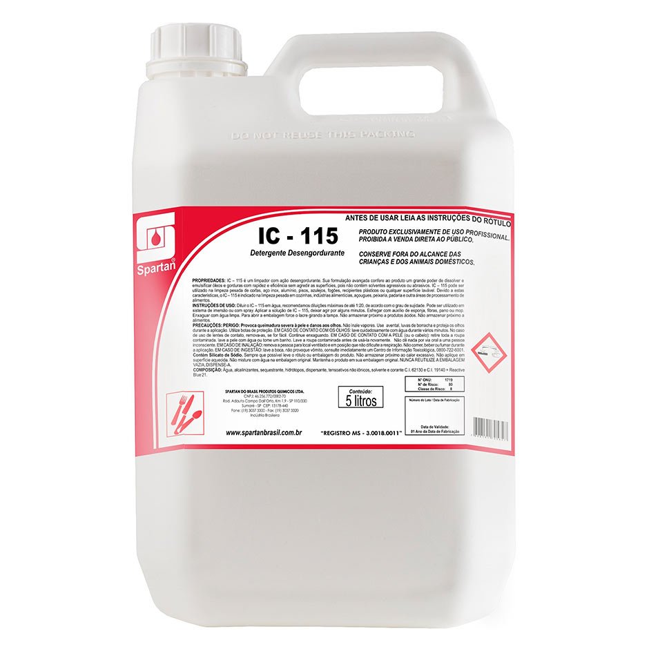 O Spartan IC-115 é um detergente desengordurante concentrado de alta qualidade. Ele é formulado especificamente para a remoção eficaz de gorduras, óleos e sujeira pesada em superfícies de cozinha, como fogões, grelhas, fornos e exaustores. Este produto é amplamente utilizado em ambientes comerciais, como restaurantes, cozinhas industriais e estabelecimentos de alimentos.