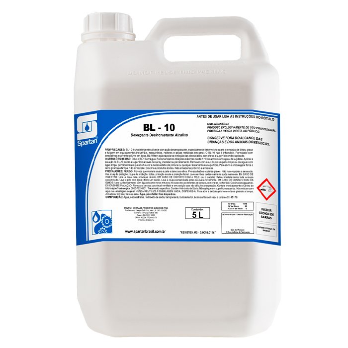 BL-10 é um detergente solvente com ação desengraxante, especialmente desenvolvido para a remoção de óleos, graxa e fuligem em equipamentos industriais, maquinários, motores e peças metálicas em geral. O BL-10 não é inflamável. Formulado com tensoativos e solvente solúvel em água, BL-10 tem ação rápida na remoção das oleosidades, sem afetar a superficie onde é aplicado.