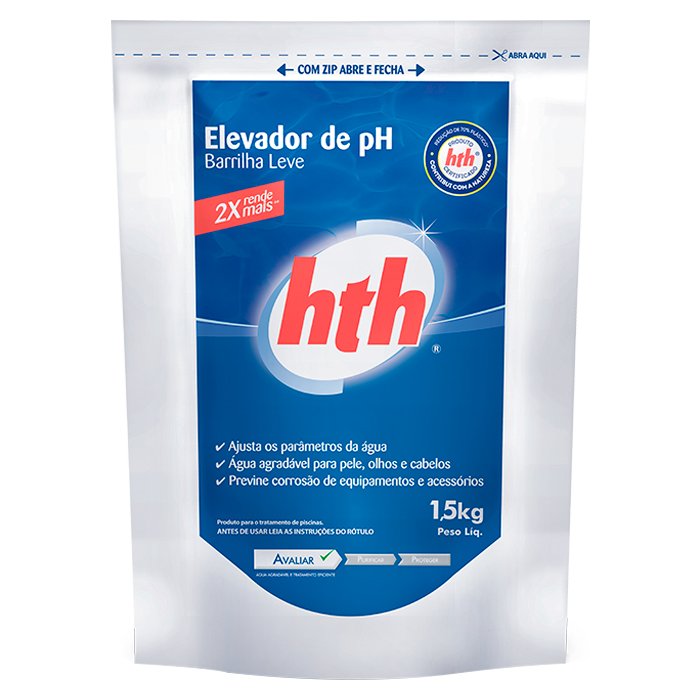 O HTH™ Elevador de pH Pó ajusta o nível do pH da água. Ele age elevando o pH quando está abaixo da faixa recomendada.