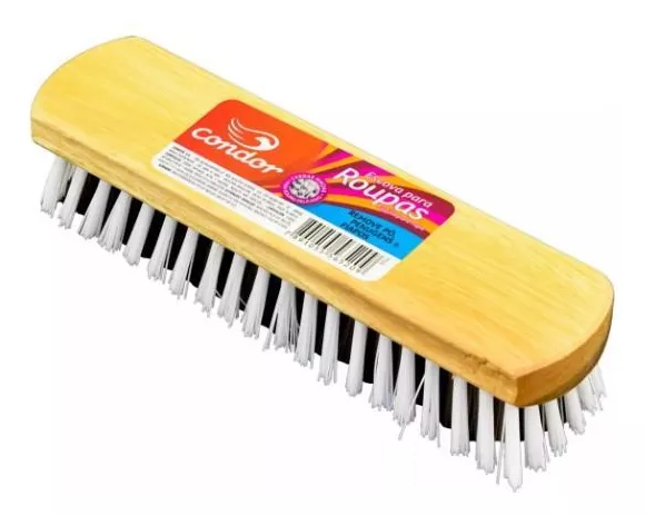 Escova projetada para ser usada na limpeza de roupas e tecidos.