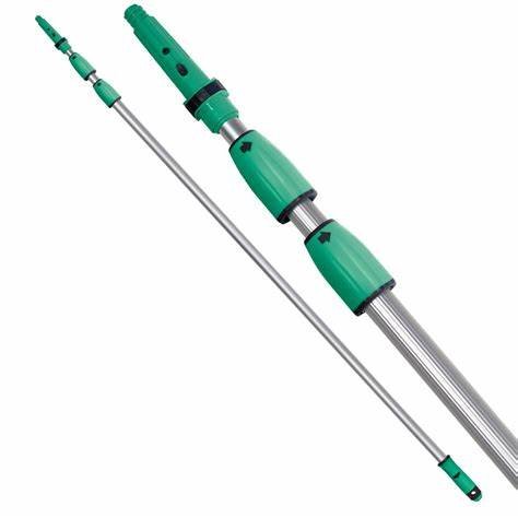 É uma haste ajustável usada para alcançar lugares altos ou difíceis de alcançar, como janelas em prédios altos, tetos, luminárias suspensas e outras superfícies elevadas. A extensão telescópica permite que você estenda o alcance de ferramentas de limpeza, como esfregões, raspadores, escovas e outros acessórios.