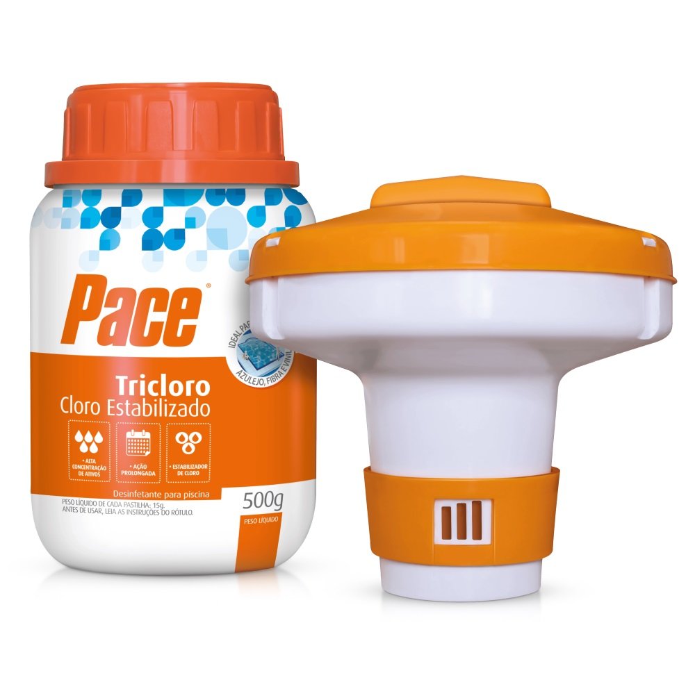 Contém: 1 Mini Flutuador + 1 Pote de Pace Tricloro com 500g – Pastilhas de 15g cada