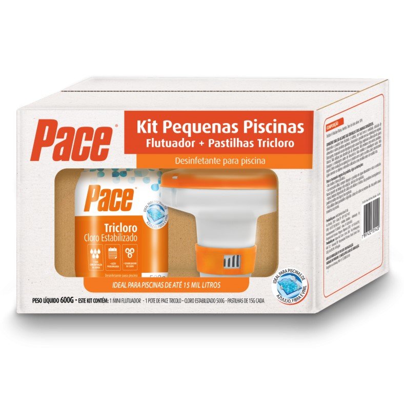 O Pace Kit Pequenas Piscinas é ideal para o tratamento de pequenas piscinas, vem com um mini flutuador e trata a água da piscina sem desperdício. Possui alta concentração de cloro ativo, e em função da sua lenta dissolução, mantém o efeito sanitizante do Cloro por mais tempo na água da piscina.