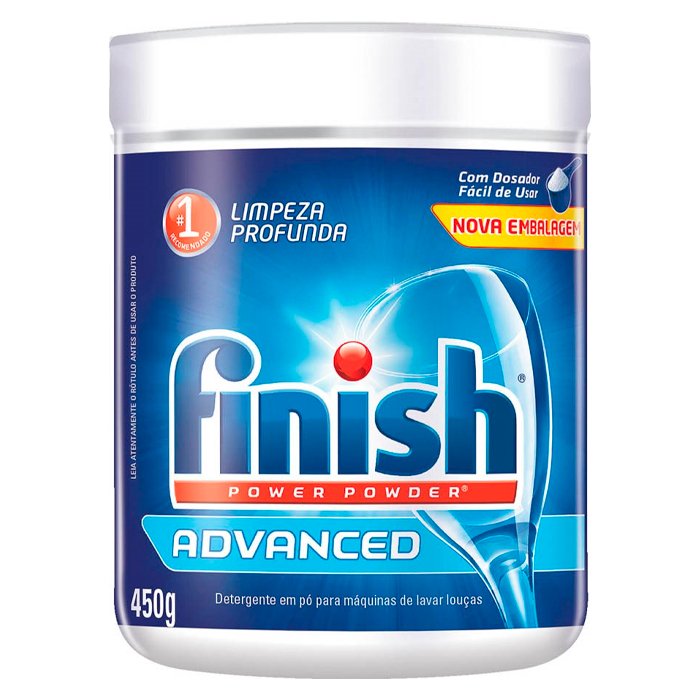 O Detergente em Pó para Lava-Louças de 450g da marca Finish é um produto projetado para ser usado em máquinas de lavar louça automáticas. O detergente Finish para lava-louças é uma escolha popular para manter seus pratos e utensílios de cozinha limpos e higienizados de maneira eficiente, especialmente quando você utiliza uma máquina de lavar louça automática. Certifique-se de seguir as instruções de uso e dosagem para obter os melhores resultados.