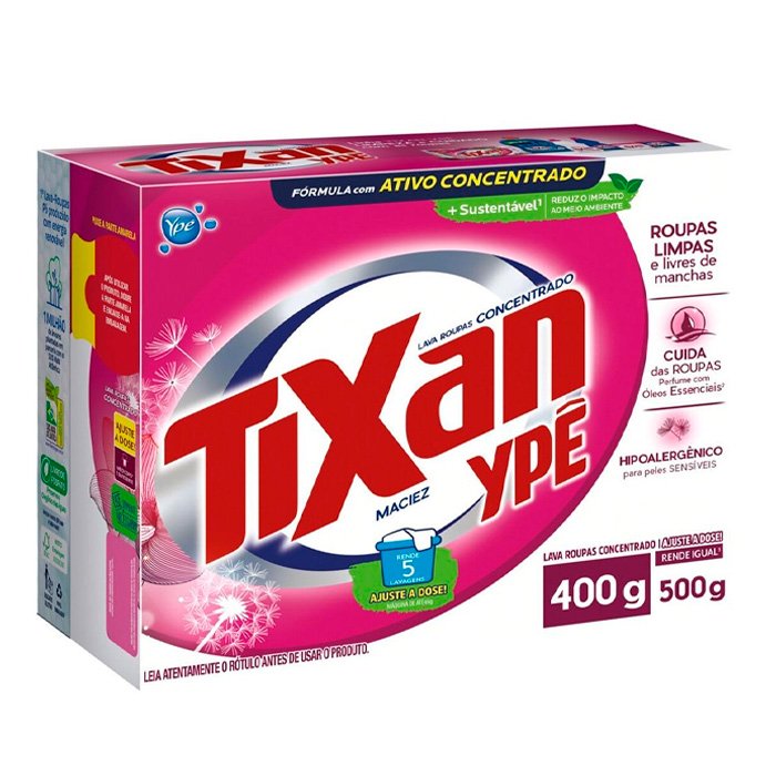 Um sabão em pó da marca Ype, com uma embalagem de 400g. Este sabão em pó é formulado para a lavagem eficaz de roupas, deixando-as limpas e com uma sensação de maciez. É conhecido por sua capacidade de remover manchas e sujeira das roupas, proporcionando resultados de limpeza confiáveis. É uma escolha popular para a lavanderia.