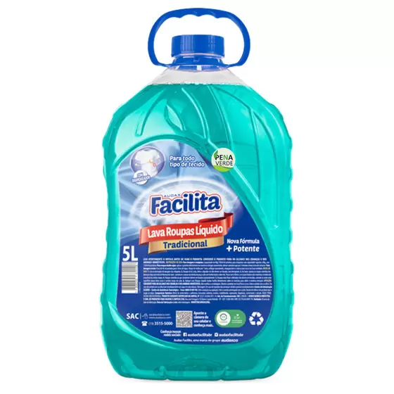 Um sabão líquido da marca Audax Facilita, com uma embalagem generosa de 5000ml. Este sabão líquido é formulado para uma limpeza eficaz de roupas, removendo manchas e sujeira, enquanto proporciona um aroma agradável. Com uma embalagem maior, é uma opção conveniente para uso prolongado na lavanderia e na limpeza doméstica, economizando tempo e esforço em reposições frequentes.