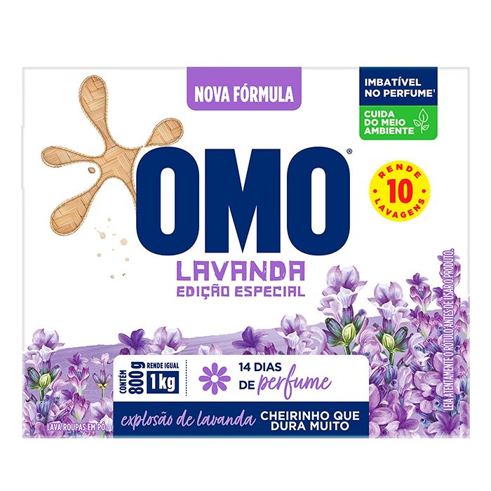 Um sabão em pó da marca Omo, com uma embalagem de 800g. Este sabão em pó é formulado para a lavagem eficaz de roupas, removendo manchas e sujeira, deixando as roupas limpas e frescas. Omo é uma marca amplamente reconhecida por sua eficácia na limpeza de roupas e é uma escolha popular para a lavanderia.