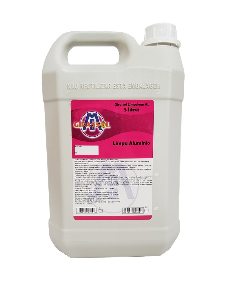 O Limpa alumínio Girassol, é formulado com agentes surfactantes inertes biodegradáveis, com excelentes propriedades de limpeza na remoção de gorduras e sujeiras.