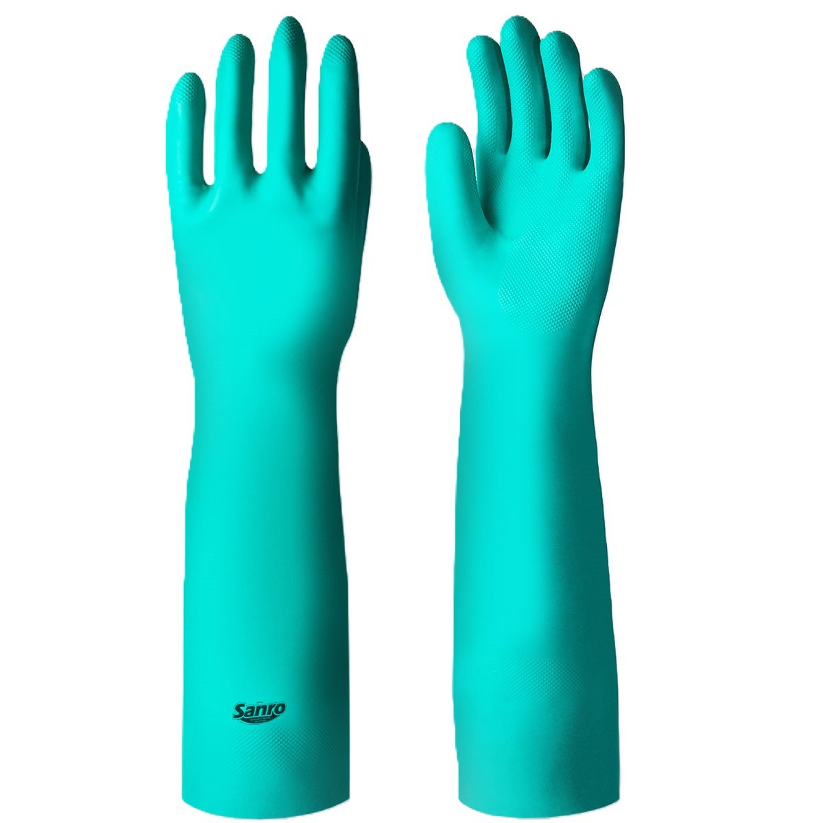 CA: 44.033 – Luva confeccionada em látex nitrílico, interior liso clorinado e palma antiderrapante. Punho longo 45cm.