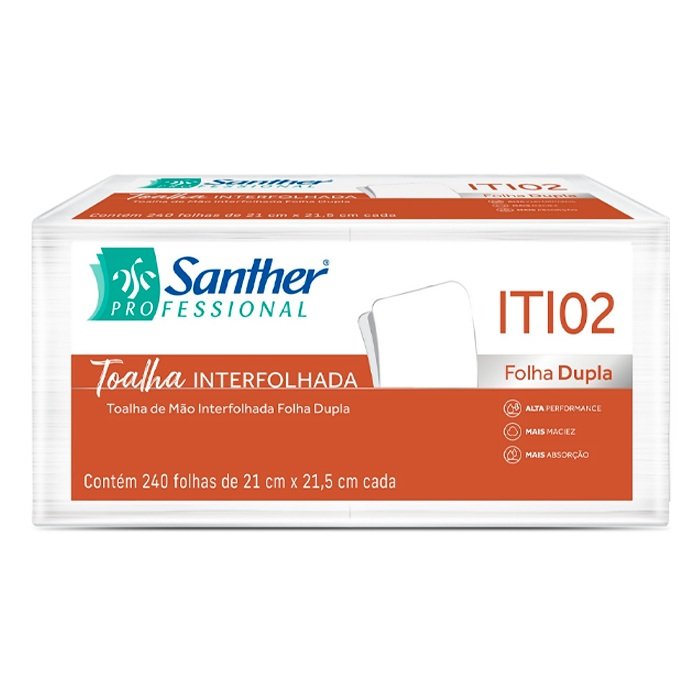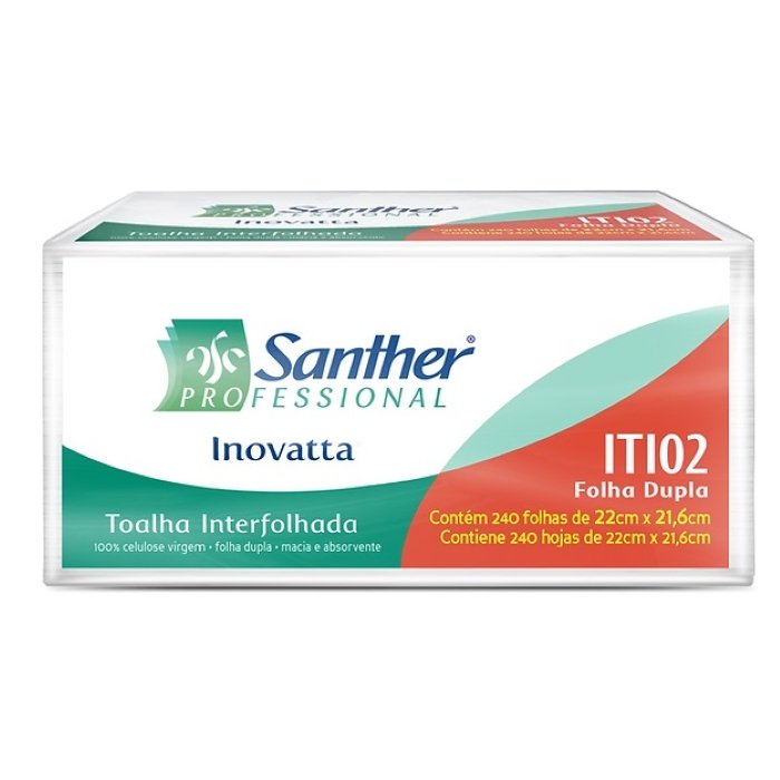 O papel interfolhado 22×21,6 cm da Inovatta Folha Dupla (2D) com 240 folhas da Santher é um tipo de papel projetado para uso em banheiros, cozinhas ou áreas onde a higiene pessoal é importante.