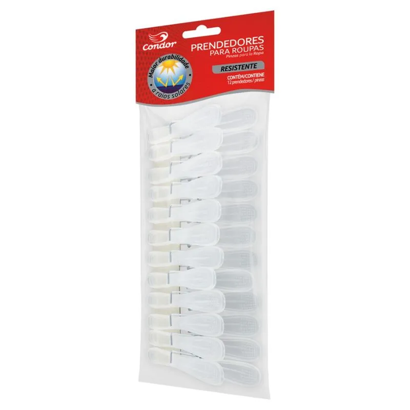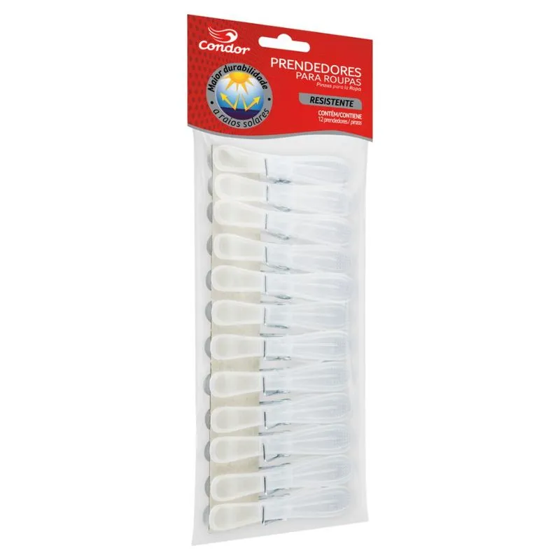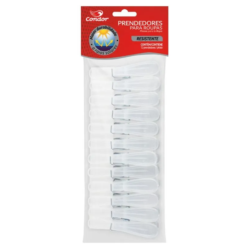 Prende muito mais! O Prendedor de Roupas Resistente Condor é ideal para prender peças de roupas médias e grandes. Eles não marcam os tecidos e possuem maior durabilidade a raios solares. O pacote vem com 12 unidades.