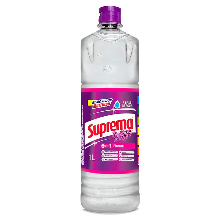 O Removedor Multiuso Florata Suprema é um produto de limpeza versátil, com fórmula à base de água, projetado para remover sujeira pesada, gordura e manchas de diversas superfícies laváveis. Ele é prático para uso doméstico e comercial, deixando um aroma suave de floral e não agredindo as mãos nem o meio ambiente. Suas principais características incluem a eficácia na remoção de sujeiras difíceis sem deixar resíduos agressivos e um alto rendimento.