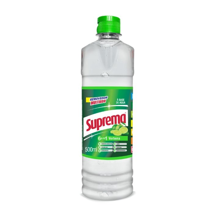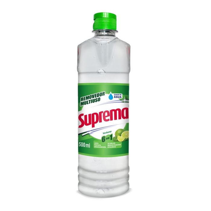 O Removedor Multiuso Verbena Suprema é um produto de limpeza à base de água, projetado para remover sujeiras, gorduras e manchas de diversas superfícies, como pisos, azulejos, banheiros e cozinhas. Não inflamável e tem um perfume suave de verbena, que deixa o ambiente com um aroma agradável. Sua fórmula versátil permite ser usado puro ou diluído em água e pode ser aplicado em eletrodomésticos, móveis e outras superfícies laváveis.