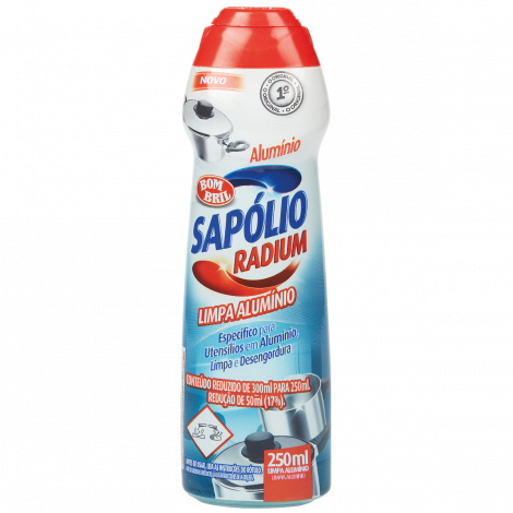 Limpeza eficaz e polimento para suas superfícies de alumínio. Fórmula que remove manchas e devolve o brilho original. Mantenha o alumínio impecável com a qualidade confiável do Sapólio Saponáceo Radium Bombril.