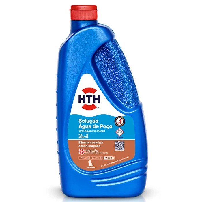 O HTH™ Solução Água de Poço inibe a ação dos metais e age como clarificante prevenindo e eliminando as manchas e mudanças na cor da água.