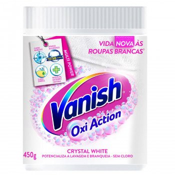 O Tira Manchas em Pó White 450g Vanish é um produto de limpeza desenvolvido para a remoção eficaz de manchas difíceis e descolorações em roupas brancas e tecidos delicados.